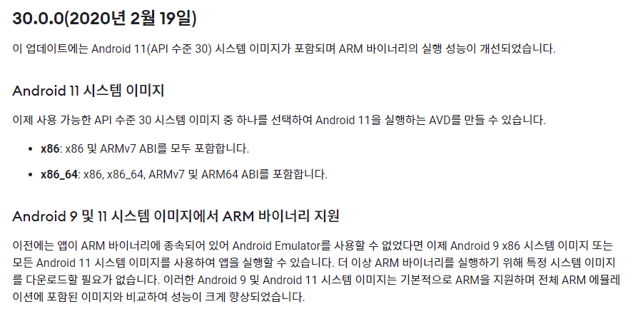 안드로이드 API 30 에뮬레이터의 x86 에서도 arm을 지원한다
